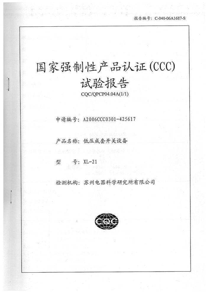 (成套)XL-21主母線資質(zhì)證書