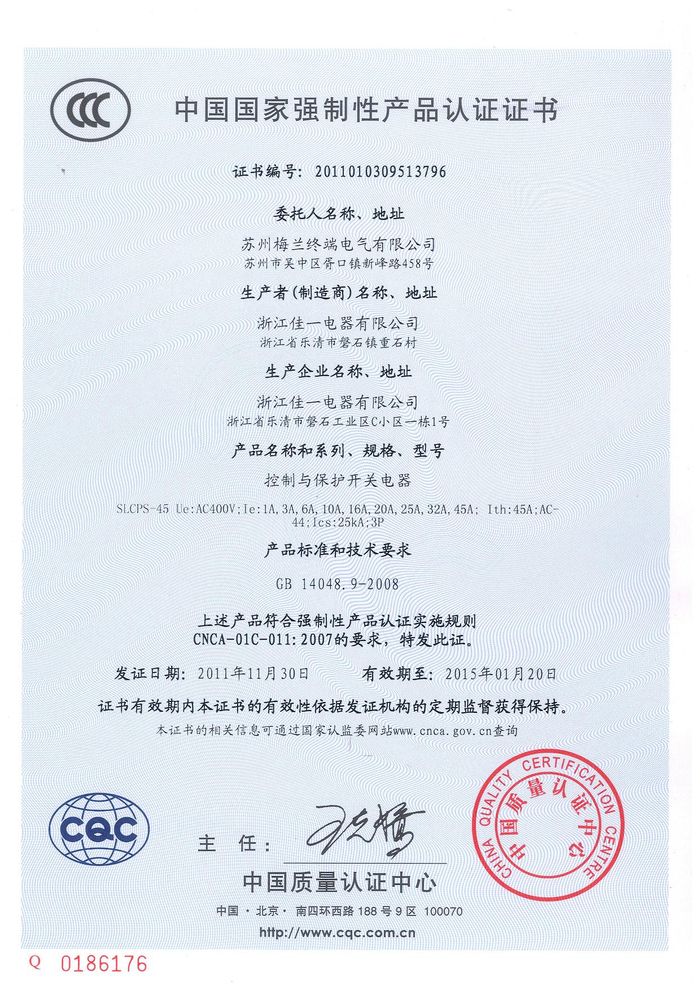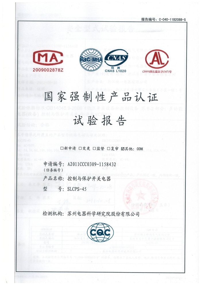 SLCPS-45控制與保護(hù)開(kāi)關(guān)資質(zhì)證書(shū)