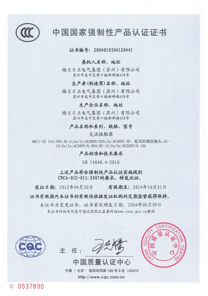 MRC1-32交流資質(zhì)證書(shū)