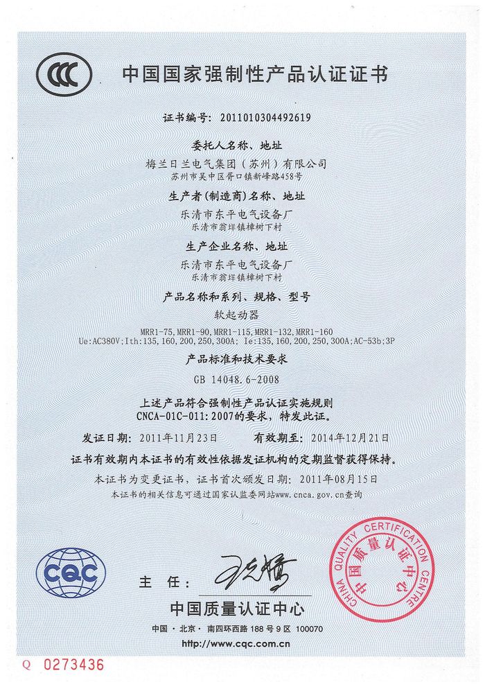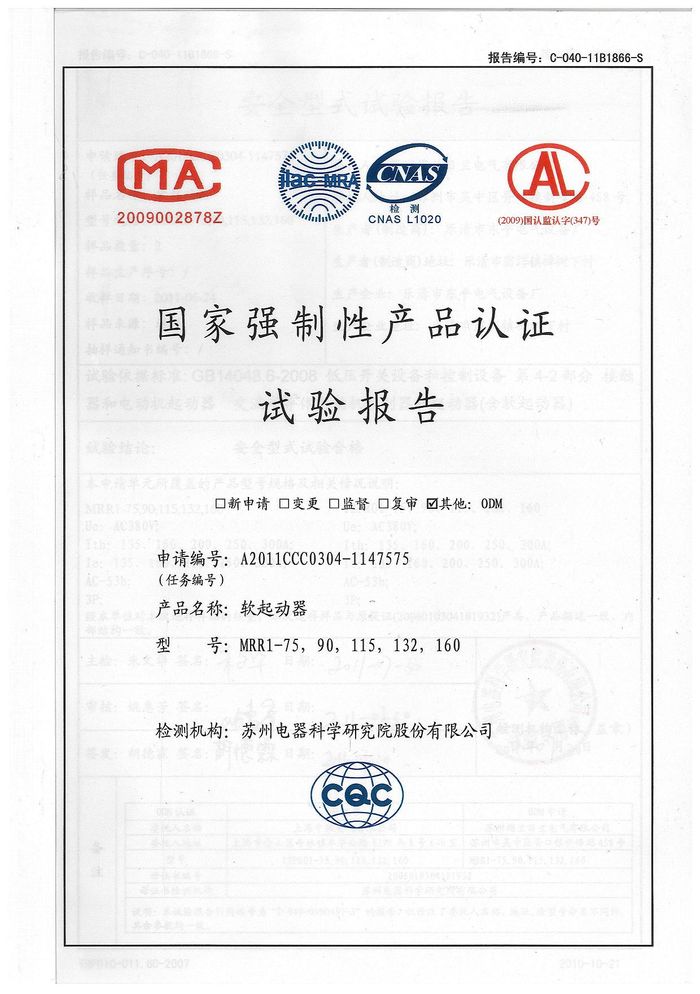 MRR1-75軟啟動(dòng)資質(zhì)證書