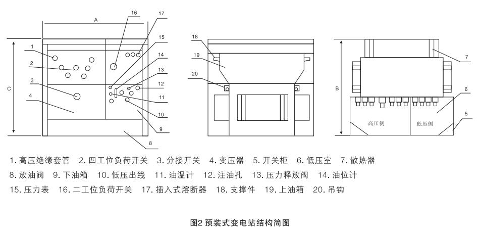 YB27系列預(yù)裝式變電站,適用于10kV環(huán)網(wǎng)供電、雙電源供電或終端供電系統(tǒng)中,作為變電、配電、計(jì)量、補(bǔ)償、控制和保護(hù)裝置。預(yù)裝式變電站內(nèi)除裝有變壓器外,高壓側(cè)還裝有四工位負(fù)荷開(kāi)關(guān)、二工位負(fù)荷開(kāi)關(guān)、后備保護(hù)熔斷器及插入式熔斷器;低壓側(cè)按用戶要求可裝控制電器、配電電器、補(bǔ)償裝置及計(jì)量表計(jì)等,以變壓器油作為絕緣和來(lái)弧介質(zhì)。